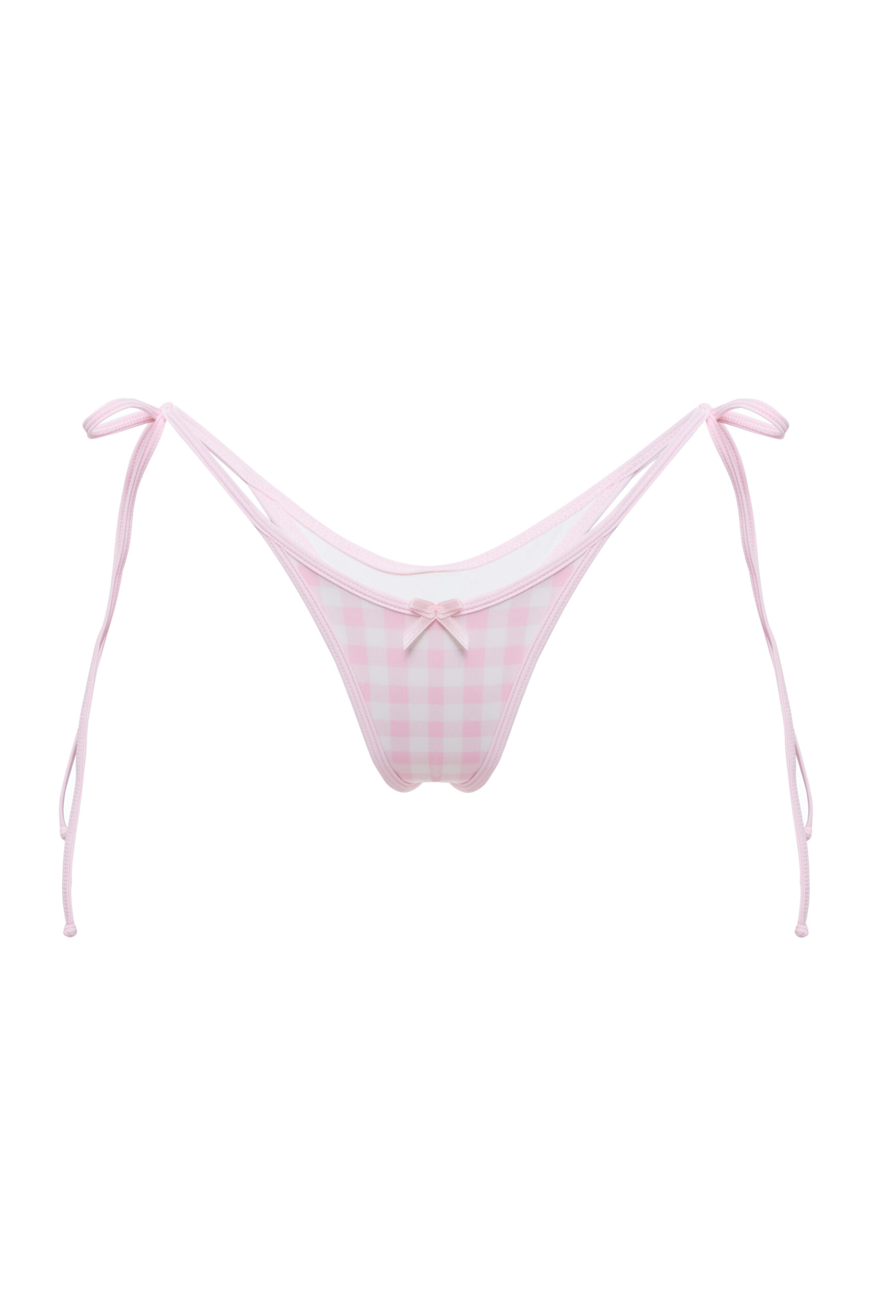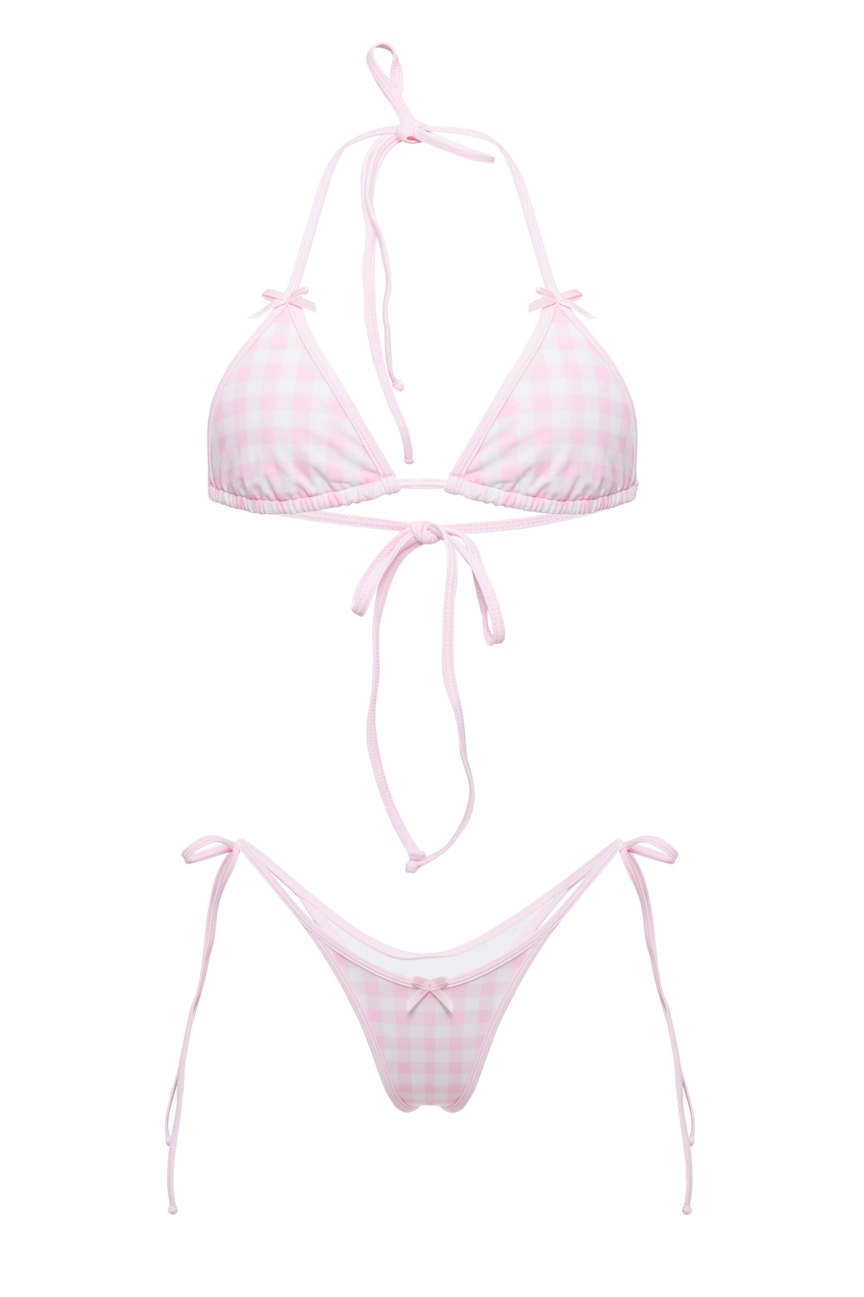 Бікіні з кастомним принтом, в обмеженій кількості. Трусики виконані з мʼякого еластичного біфлексу, прикрашені бантом з атласной стрічки.Склад: поліестер – 80%, еластан – 20%. На моделі: розмір XS. Параметри: 83-60-86. Зріст: 166.
